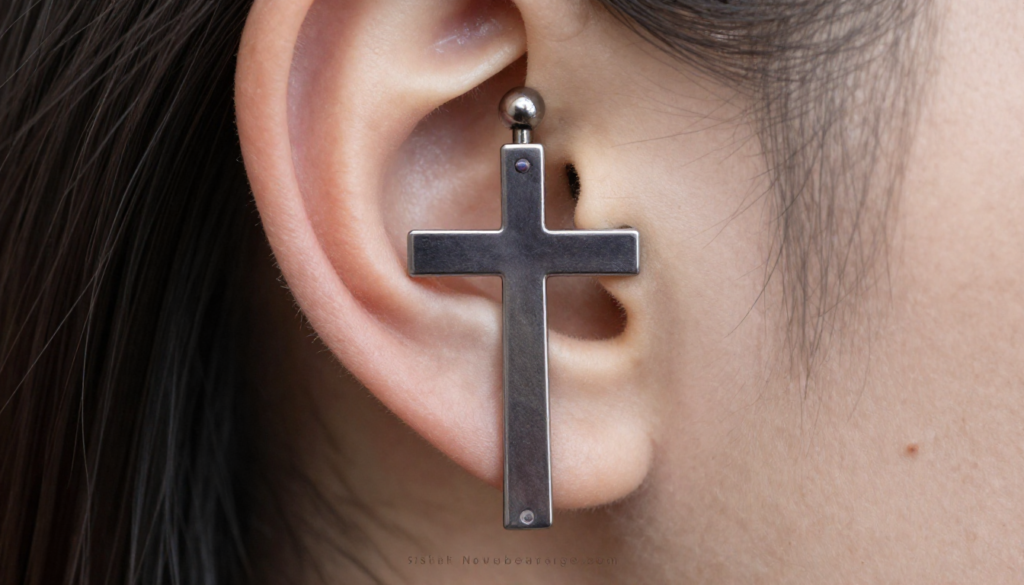- Hybrid approach: One or two base piercings plus a piece of jewelry that extends into a cross shape